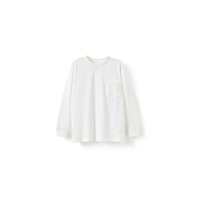 A laidback long-sleeve for cool days and cooler kids.With a relaxed fit, ribbed neck and cuffs, and a soft 100% cotton feel. They ll want to live in this one. The chest pocket adds a little extra something, while the round neck keeps it classic.Comes in bold stripes or their favourite go-to colour. Wear it solo or layered under a hoodie. It s an everyday staple made for all kinds of play.Style tip: match it with baggy jeans for the full vibe.