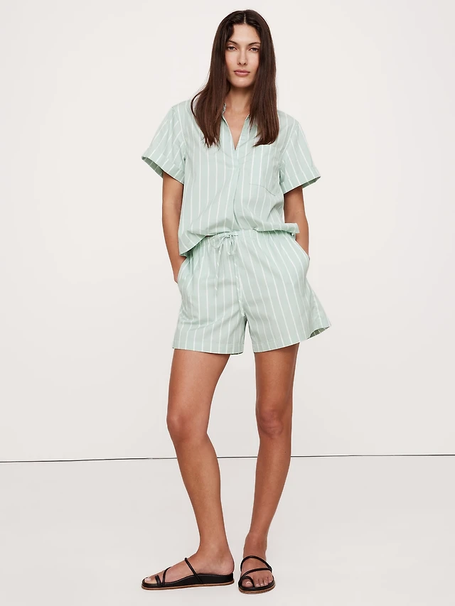 9.5" Herringbone Linen-Cotton Pleated Pull-On Short