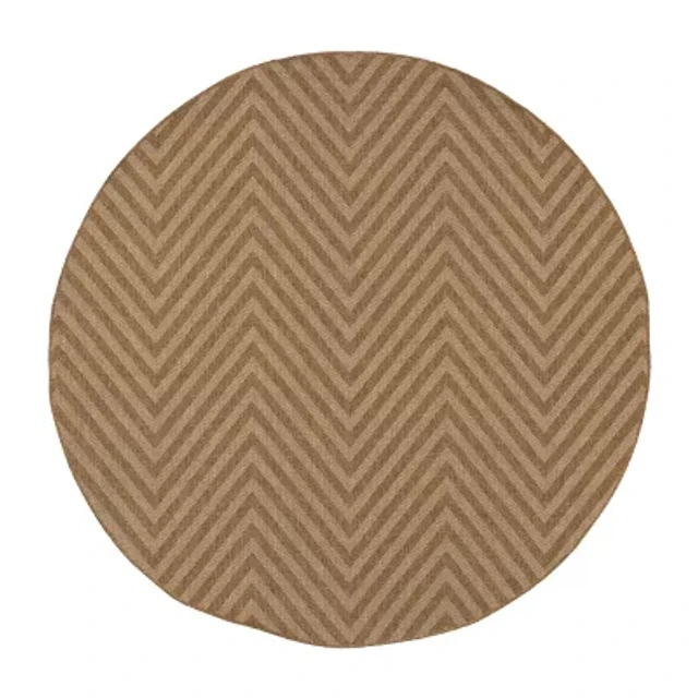 Covington Home Kehlani Chevron Stripe 7'10"X7'10" Indoor Outdoor Round Area Rug