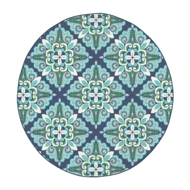 Covington Home Majorca Floral Medallions 7'X7' Indoor Outdoor Round Area Rug