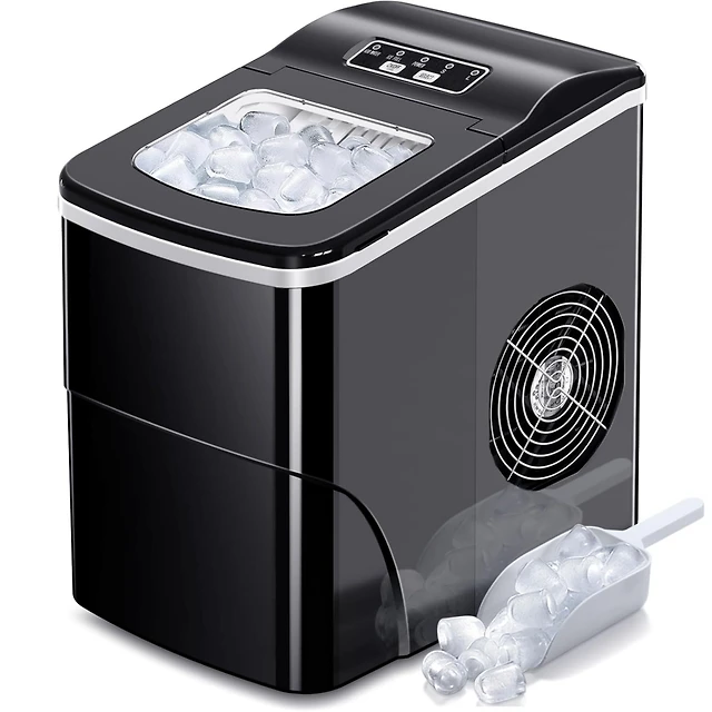 Cowsar Ice Maker Countertop Ice Machine, 2 Sizes S/L 8 Bullet Ice Ready in 9 Mins, 26.5lbs/24H, Portable Small Ice Maker with Self-Cleaning,Scoop,Bask