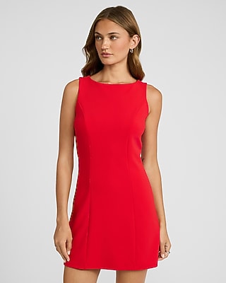 Crepe Boat Neck Sleeveless Mini Sheath Dress