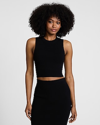 Crepe Knit Body Contour Crew Neck Sweater Tank