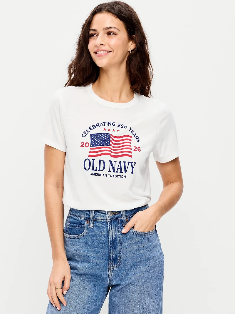 Crew-Neck Flag Graphic T-Shirt