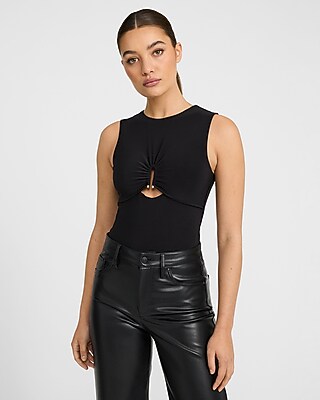 A bodysuit perfect for your next night out, this sleeveless style features a crew neckline and a cutout with u-wire hardware for a ruched effect.