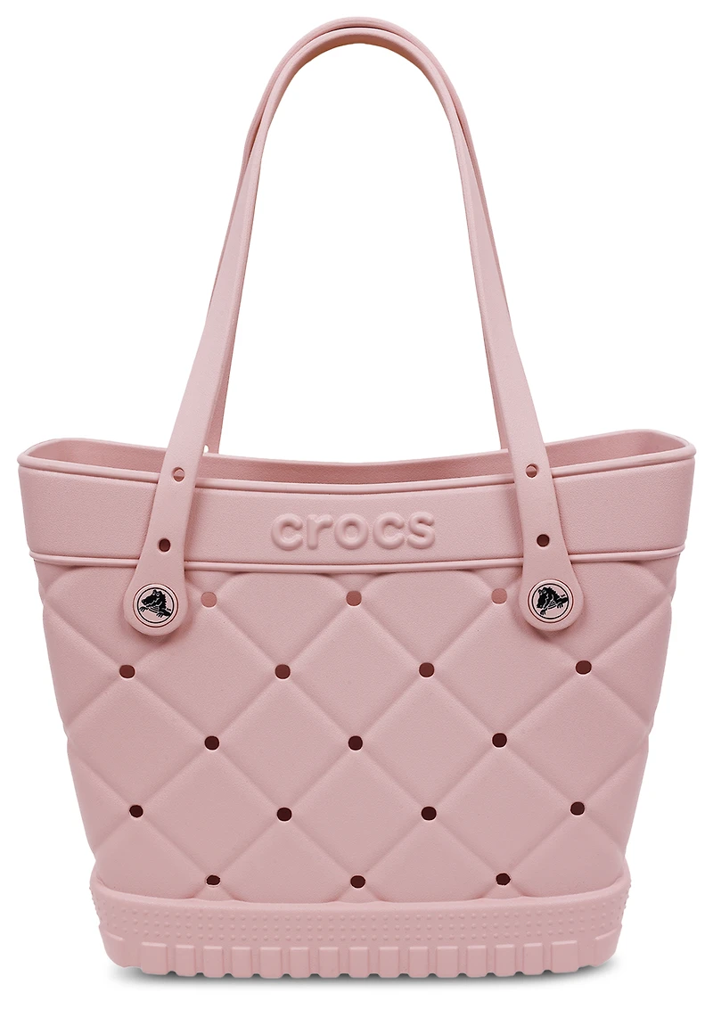 Why settle for ordinary when you can carry a tote that's as bold, fun, and unique as you? Meet the Crocs Medium Quilted Tote, your daily companion with a big personality. Whether you're poolside, beach-bound, park-hopping, or just stepping out for the day, this tote is designed to go everywhere with you in true Crocs style. Durable and spacious, this medium tote blends form, function, and effortlessly cool charm. The tapered top width that offers better visibility keeps your essentials within easy reach, while a slightly narrower base creates a neat silhouette. The 17 Jibbitz holes on each side and four on each strap let customize your tote to match your outfit. Turn every outing into a moment of self-expression with the Crocs Medium Quilted Tote. Crocs Medium Quilted Tote features: