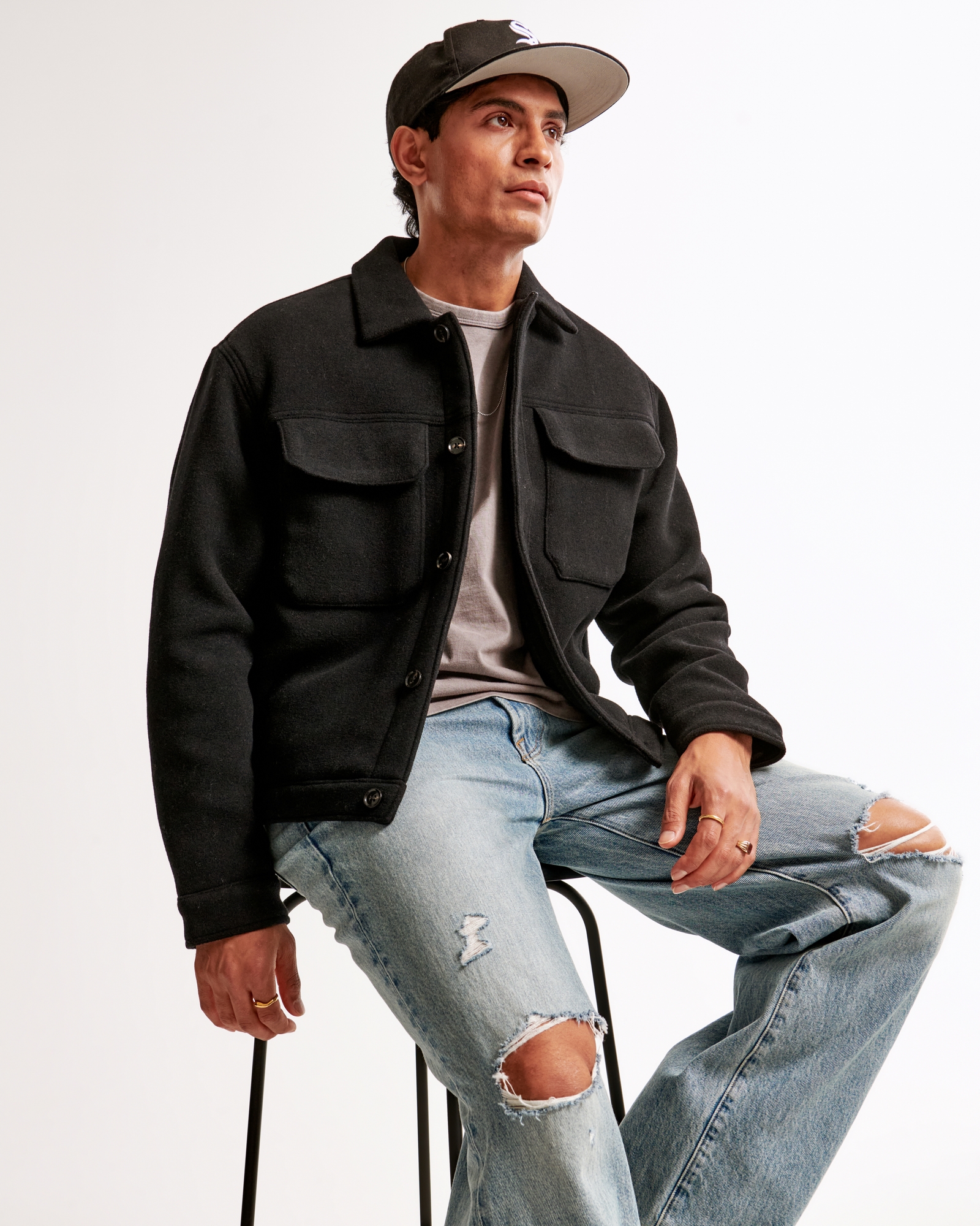 Stitched Sweater Shirt Jacket