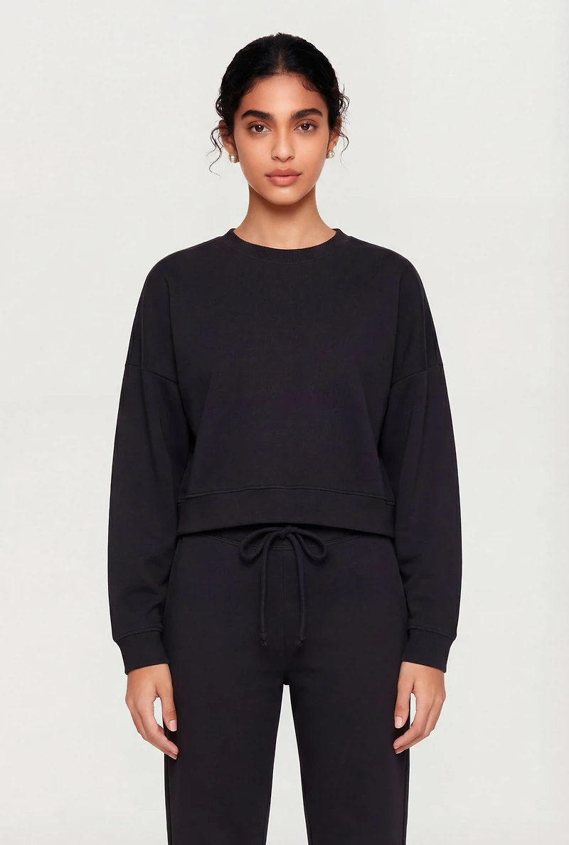 Cropped Long Sleeve Crew Neck Pullover Sweatshirt