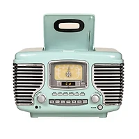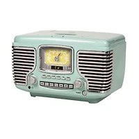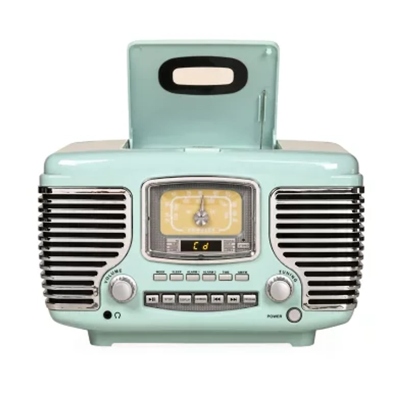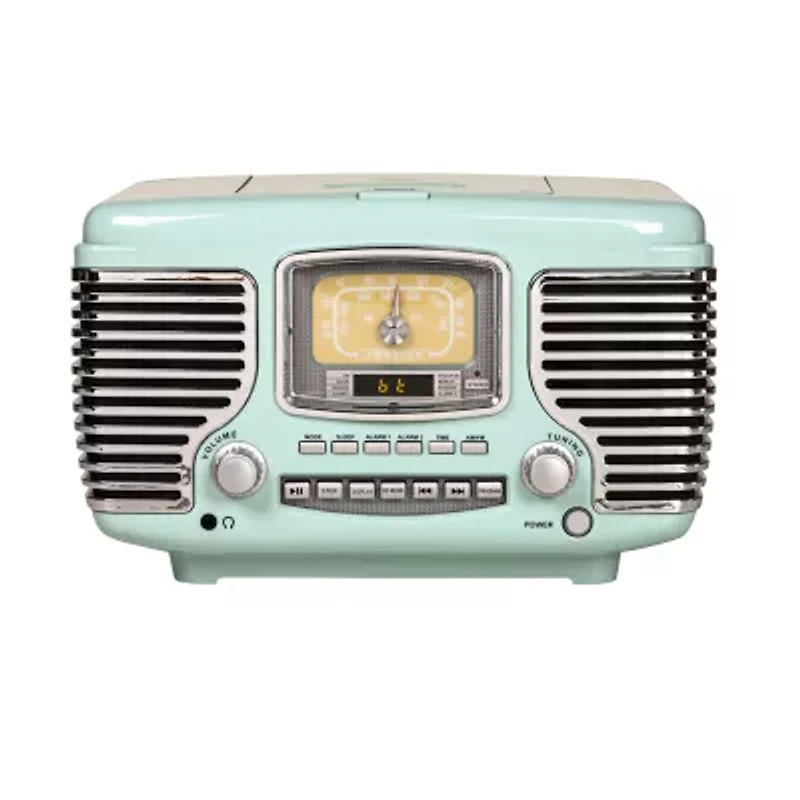 Get behind the wheel of your musical road trip with the corsair radio! Look under the hood to pop in a cd, or tune the am/FM radio on this color and chrome chassis. Get on the road on time with a built-in alarm clock with dual alarms. The dynamic stereo speakers and built-in Bluetooth receiver under the grill are enough to get anyone's wheels spinning in the morning!
