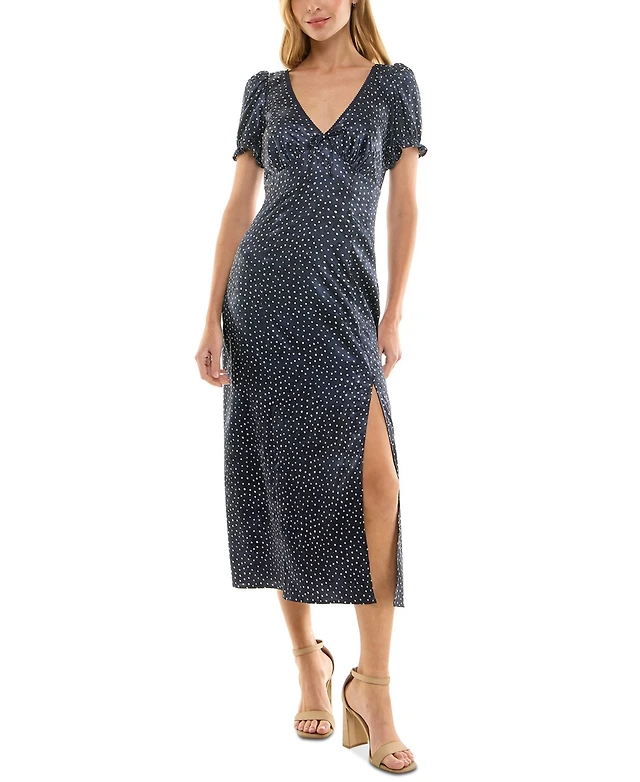 Crystal Doll Juniors' Printed Jacquard Satin Midi Dress
