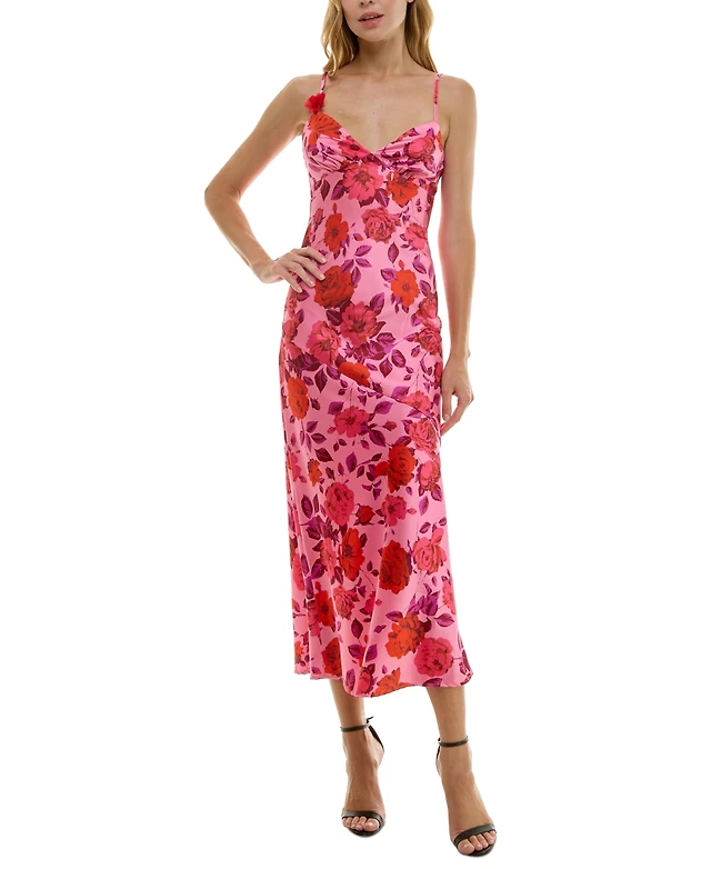 Crystal Doll Juniors' Strappy Floral Satin Maxi Dress
