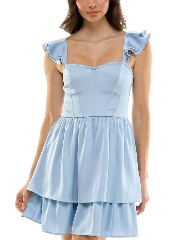 Crystal Doll Juniors' Sweetheart-Neck Ruffle-Sleeve Dress