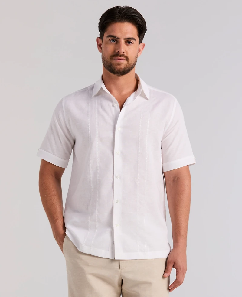 Cubavera Men's Short Sleeve Panel Button-Front Linen Camp Shirt
