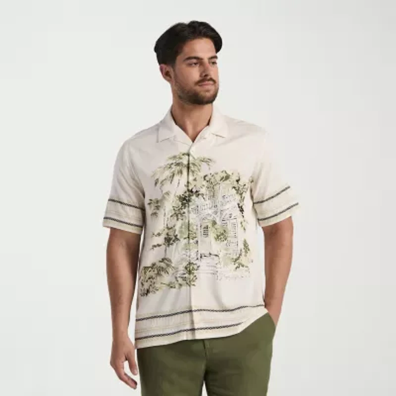 Cubavera Scenic Border Print Mens Short Sleeve Regular Fit Button-Down Shirt