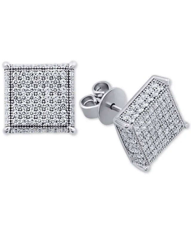 Sterling Silver Cubic Zirconia Square Stud Earrings