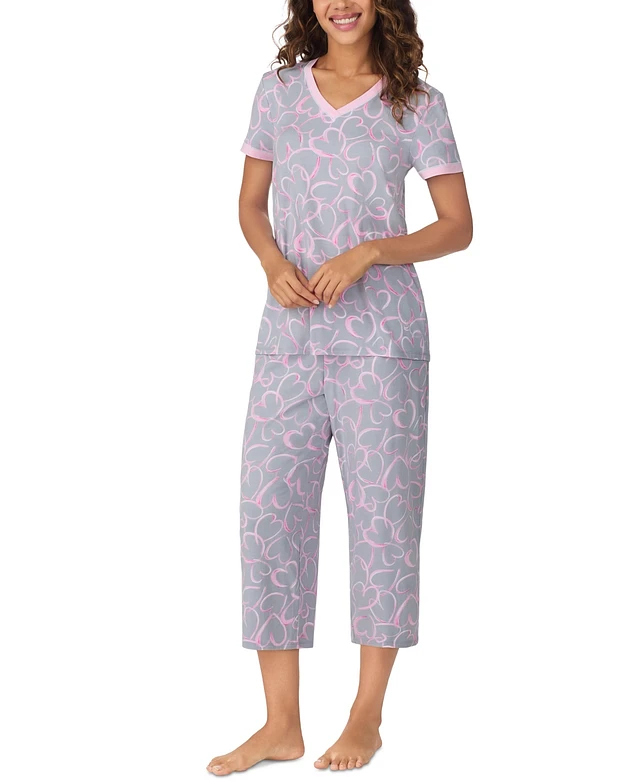 Ellen Tracy Women's Printed Short-Sleeve Cropped Pajama Set