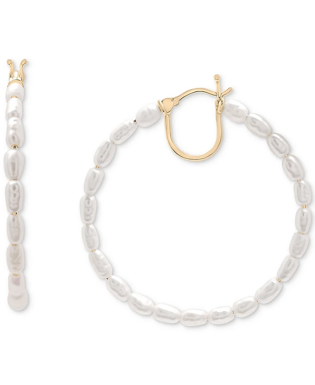 Cultured Freshwater Pearl (5 x 2-1/2mm) Medium Hoop Earrings in 10k Gold, 1-1/4"
