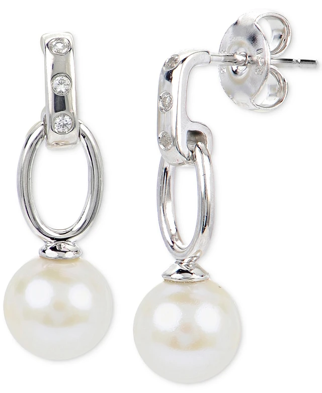 Cultured Freshwater Pearl (7mm) & Lab Grown White Sapphire (7/8 ct. t.w.) Drop Earrings in Sterling Silver