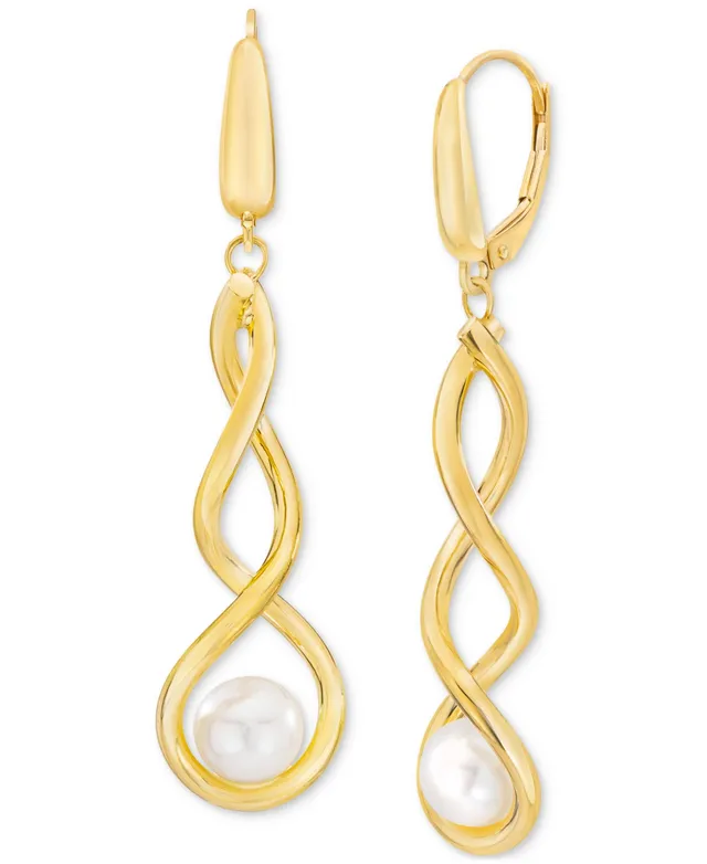 Cultured Freshwater Pearl (7-8mm) Twist Drop Leverback Earrings in 14k Gold