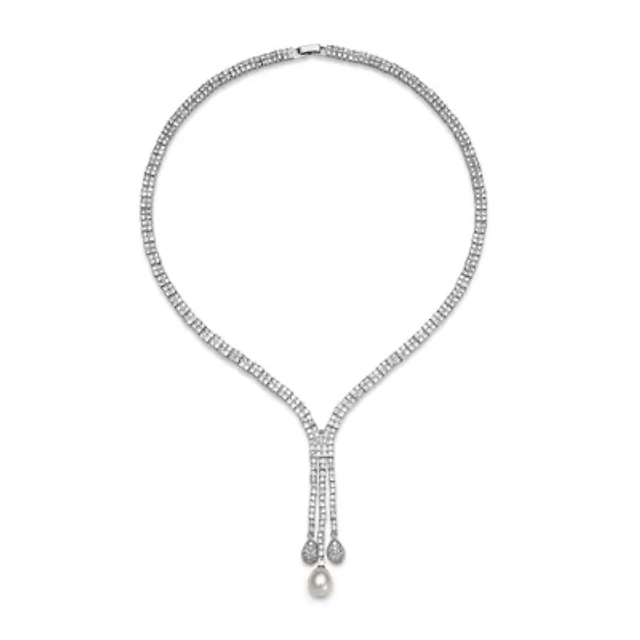 Cultured Freshwater Pearl and Cubic Zirconia Bridal Necklace