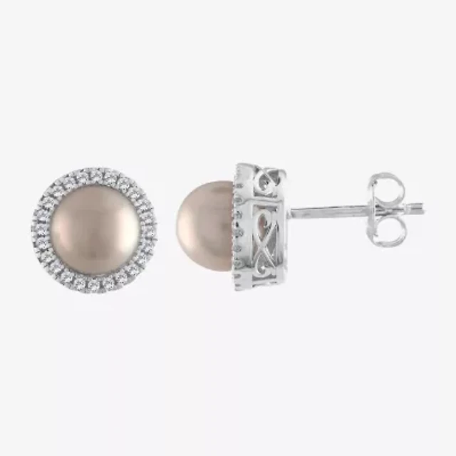 Belle de Mer Blush Cultured Freshwater Pearl (8-9mm) & Lab Created White Sapphire (2 ct. t.w.) Stud Earrings in Sterling Silver