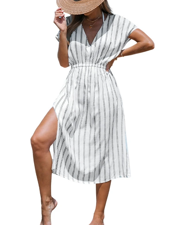 Cupshe Women's Striped Midi Cover-Up Dress