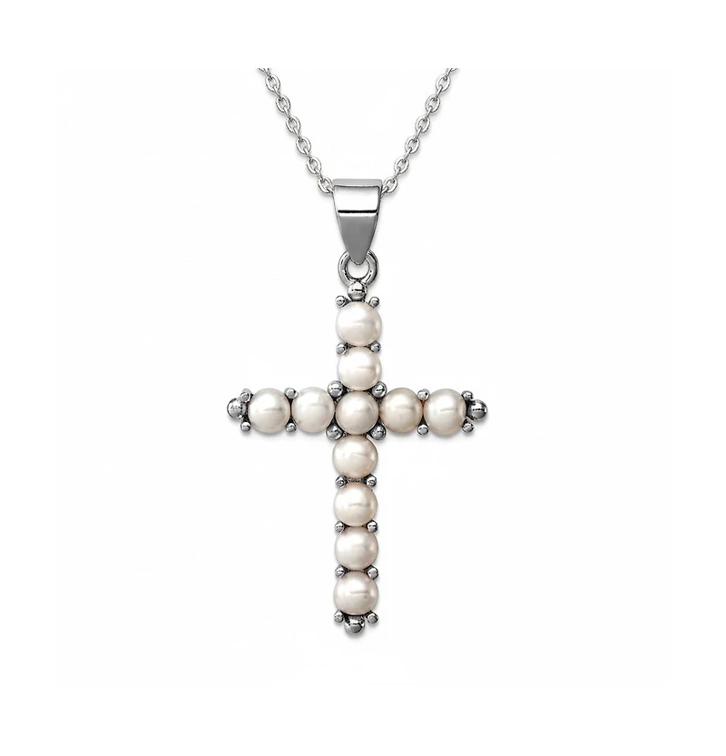 Curata Jewelry 925 Sterling Silver 18 Inch Rhodium-plated Large Freshwater Cultured Pearl Cross Necklace