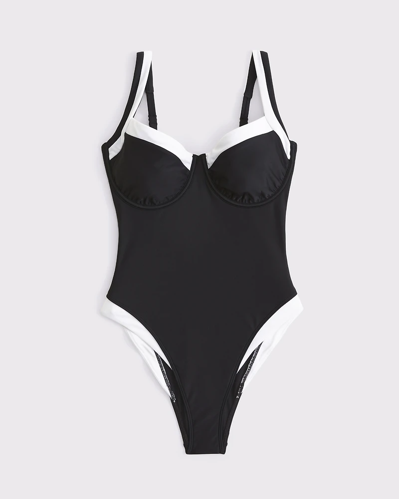 Our one-piece swimsuit in our core swim fabric and Curve Love Fit, designed for cup sizes D-F. This Curve Love one-piece includes fuller bust support and more room in the hips, with a proportionally smaller waist width. Designed with the Wide Strap Underwire fit you know and love on the top, and our classic moderate coverage, high-leg fit at the bottom. Features a clasp closure at the back and an underwire fit to provide greater support, with flattering contrast details.