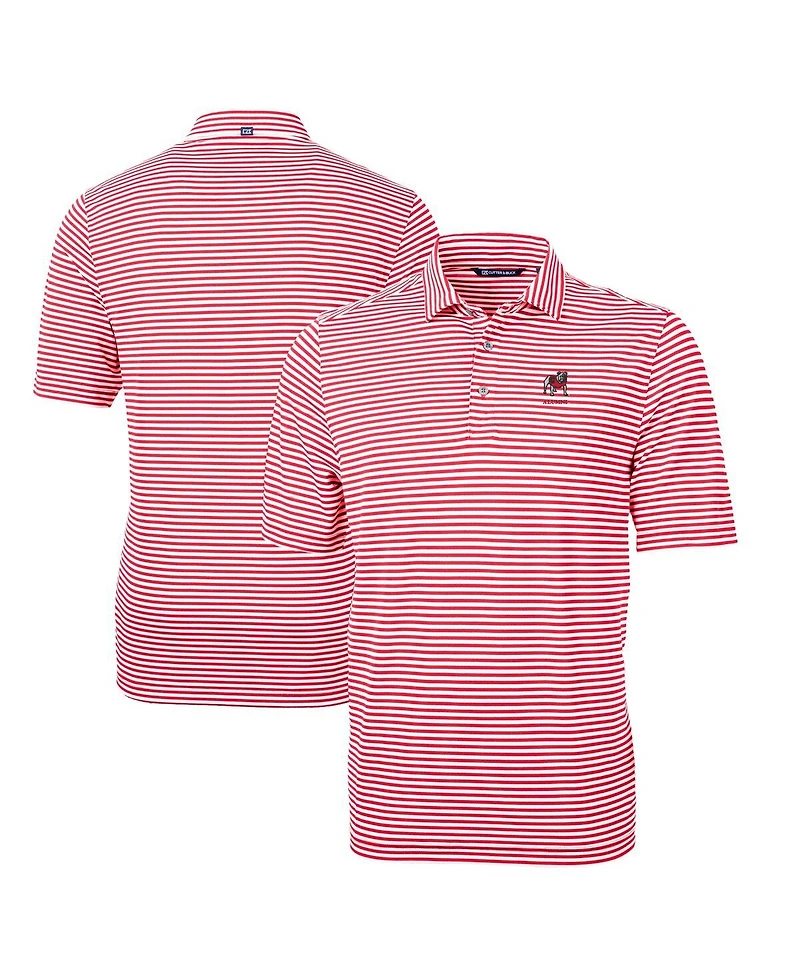 Cutter & Buck Men's Red Georgia Bulldogs Alumni Logo Virtue Eco Pique Stripe Polo Shirt