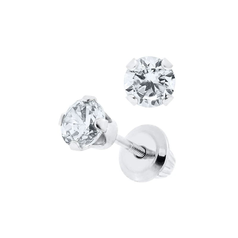 Kury Collection | 14K White Gold Studs with Clear Zirconias, with screw backs