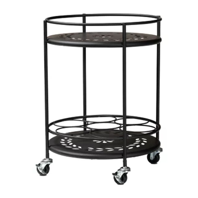 French Country Stainless Steel Counter Top Kitchen Cart with Wine Rack