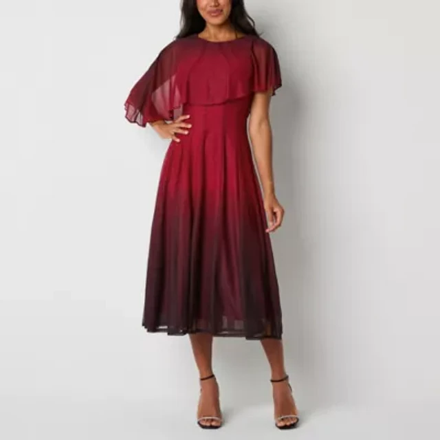 Danny & Nicole Glitter Womens Short Sleeve Ombre Midi Cape Fit + Flare Dress