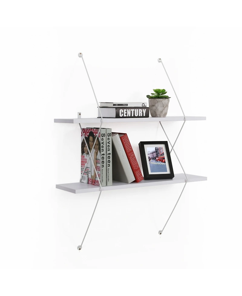 The Danya B. Two Level Wall Shelf with Wire Brackets - White merges architectural flair with furniture resulting in a contemporarily designed wall-shelf that truly turns heads. This expertly-crafted hanging shelf is made from laminated Mdf and metal and features white shelves affixed on white wire brackets to create a unique and eye-catching architectural look. Display books, tabletop decor, picture frames, or precious trinkets - the possibilities are endless. The Danya B. Two Level Wall Shelf with Wire Brackets - White will look right at home in modern-themed living spaces.