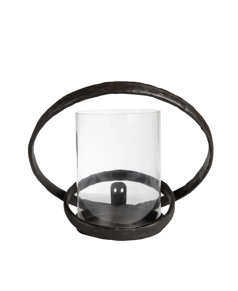 Elevate a drab corner s visual appeal with the Orbits Aluminum Wall Candle Sconce. Your guests are sure to notice its artistic craftsmanship: an elegant and lightweight aluminum frame in dark brown finish bends and wraps around a transparent glass hurricane, setting the stage for a romantic flame. Hang this wall candle sconce along your entryways, hallways, living room, or bedroom to beautifully illuminate your living space.