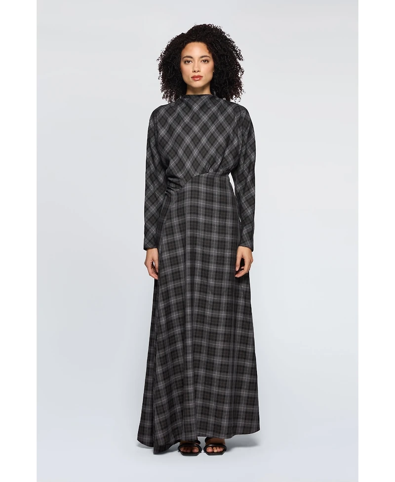 Verka Dress - A printed tartan maxi dress featuring a stylish drape detail for added texture and movement.