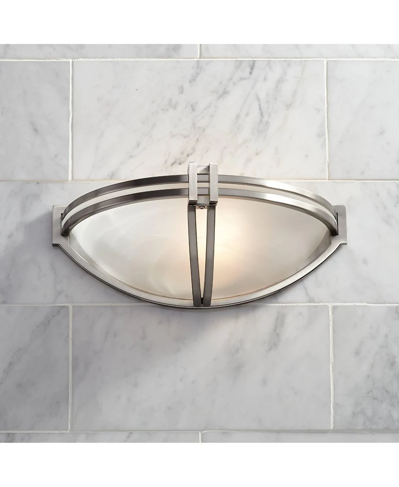 Deco Modern Wall Light Sconce Brushed Nickel Silver Hardwired 13 3/4" Wide Fixture Curved Line Marbleized Glass Shade Bedroom Bathroom Bedside Living