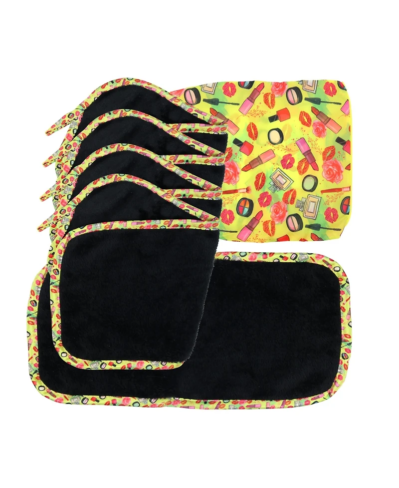 Decorative Microfiber Makeup Remover Cloths (Pack of 5, Design Options), Soft Coral Fleece Reusable Towels with a Travel Bag, Facial Wash Cloth