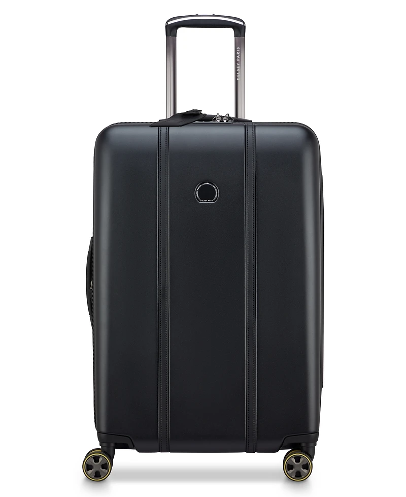 Cadence, a novel collection true to the Delsey Paris heritage; Parisian style entwined with durability. Styled with leather accents and a bonus luggage tag. The 24"" Check-In Spinner is crafted with multiple functions to enhance every trip Enjoy a multistage trolley system, our patented Zip Securitech Tsa lock combination for ultimate security, and multi-pocket organization.