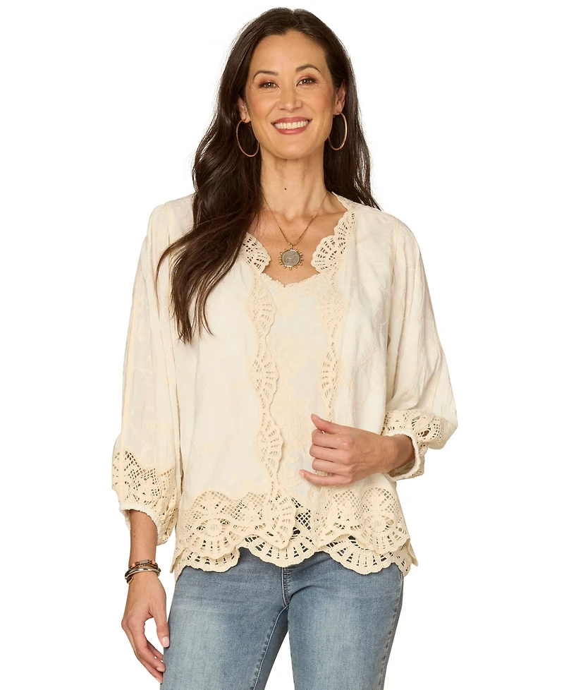 Democracy Women's Open-Front Crochet Framing Crop Jacket