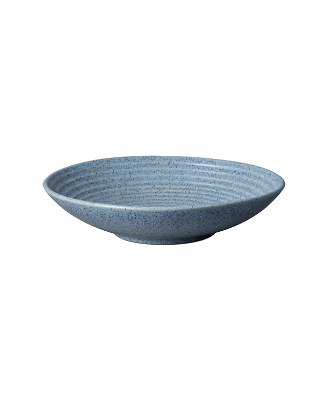 The convenient size of Denby's Studio Blue Flint medium ridged bowl features concentric interior grooves in a mellow shade of speckled stoneware.
