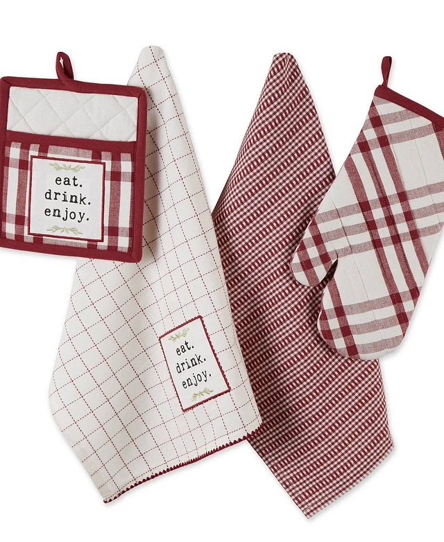 Design Imports Home Sweet Farmhouse Kitchen Collection, Potholder/Oven Mitt/Dishtowel Set, Barn Red, 4 Count