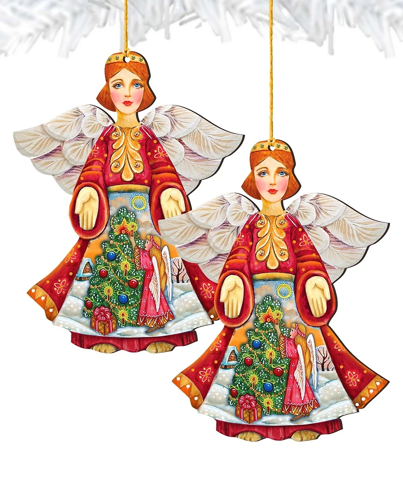 Designocracy Christmas Tree Angel Wooden Ornament Set of 2 in San Juan, PR