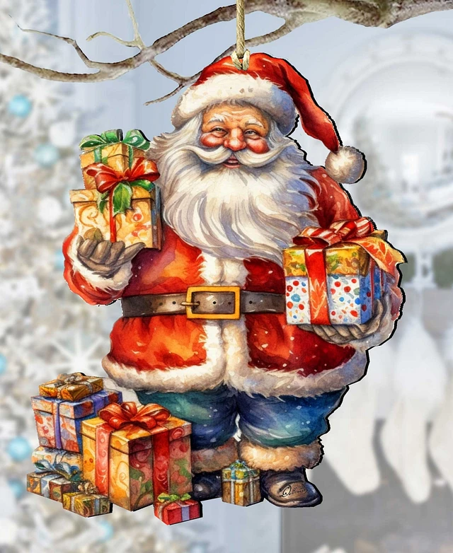 Designocracy Merry Delivery Santa with Gifts Christmas Wooden Ornaments G. DeBrekht