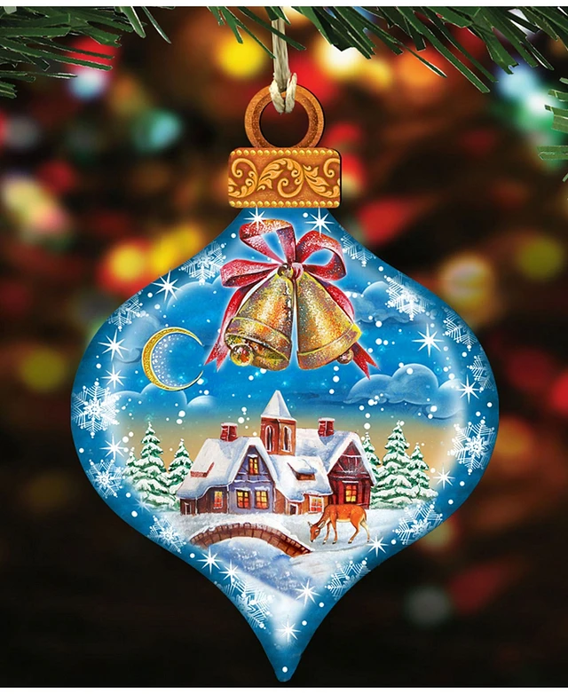 Designocracy Winter Drop Wooden Christmas Ornament, Set of 2