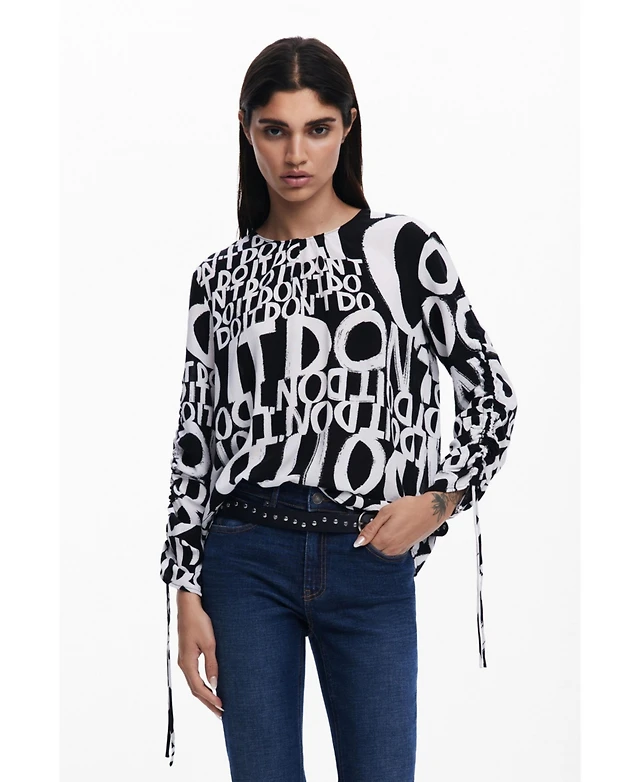 Desigual Women's T-shirt with printed sleeves