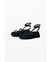 Rubber sandals with a wide platform, straps, and solid-colored ankle ties.