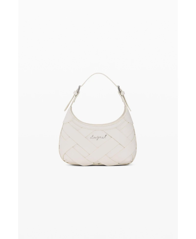 Small bag with interchangeable straps, braided faux leather details and metallic logo applique.