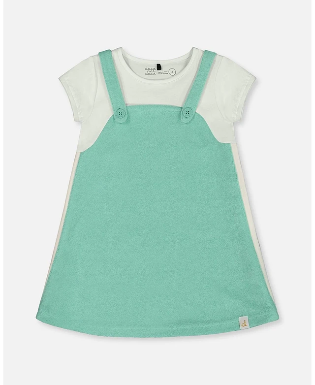 Deux par Big Girls Terry Cloth Dress Turquoise And Off-White