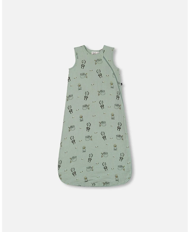 Deux par Deux Baby Boys Printed Muslin Sleep Sack Sage Monkey - Infant|Toddler