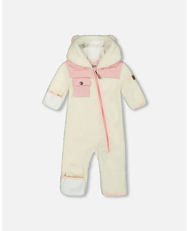Deux par Deux Baby Girls One-Piece Sherpa Mid-Season Outerwear Off-White And Pale Pink